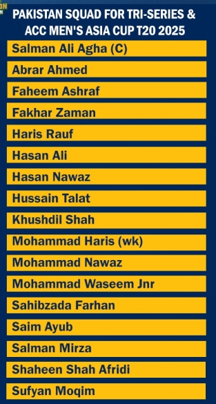 Lahore, 17 August 2025 – The Men’s National Selection Committee has finalized Pakistan’s T20I squad for two big assignments: the upcoming tri-nation series in Sharjah and the ACC Men’s Asia Cup 2025 in the UAE.…